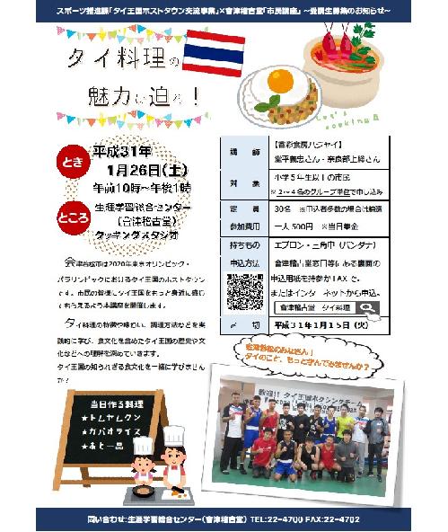 | 2019年1月1日(火) ~2019年3月31日(日) | あいづ食の陣・2019冬(会津地鶏)開催中! | 時刻未定 | あいづ食の陣に参加している会津若松市内の飲食店、宿泊施設、販売店 | あいづ食の陣実行委員会 (事務局:会津若松市農政課) 電話0242-39-1253 | ||
