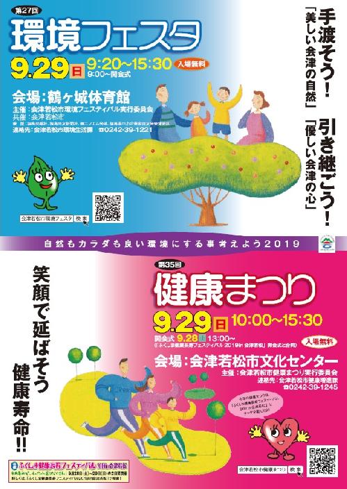 | 2019年9月29日(日) | 第27回環境フェスタ | 09:20 ~15:30 | 鶴ヶ城体育館 | 会津若松市役所 環境生活課 電話0242-39-1221 | ||