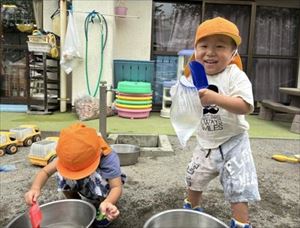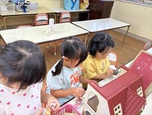 公開日 2023年09月05日 更新日 2025年09月22日 8月 ひよこ組(0歳児) つかまり立ちしてみたら、自分のお顔が見えたよ! 斜面のぼりに挑戦!! 中からでてくるかな~? りす組(1歳児) トウモロコシの皮をむいてみよう! 同じ絵のところに入れていこう♪ お友達と一緒に、外遊び うさぎ組(2歳児) 女子会中♪おいしいね♪ お外での水遊び! 皮むきのお手伝い!中身が見えた!! ぱんだ組(3歳児) 夏野菜カレーつくりのお手伝い じゃがいもの収穫。とれたよ~ 仲良く見立て遊び♪ きりん組(4歳児) 今年もじゃがいもの収穫ができました 花火の製作中。きれいな花火ができたよ カレークッキング!皮むきがんばるぞ~ ぞう組(5歳児) 包丁で野菜を切ったよ カプラのタワーが高くなってきたね!! 年下のお手本となりがんばるぞう組!! お問い合わせ 会津若松市役所 会津若松市中央保育所 電話&FAX:0242-27-3370 メール 関連ワード こども 保育所