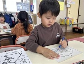 ハロウィンの塗り絵に挑戦!きりん組(4歳児)