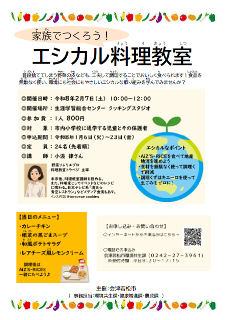 普段捨ててしまう野菜の皮なども、工夫して調理することでおいしく食べられます!食材を無駄なく使い、自分にも社会にもエシカルな取り組みを学んでみませんか?