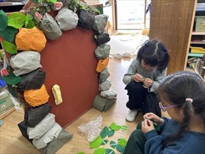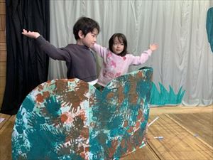練習の期間には友だちと話しあう姿や、小道具、大道具を協力し作りながら、当日を楽しみにしていたこどもたち。