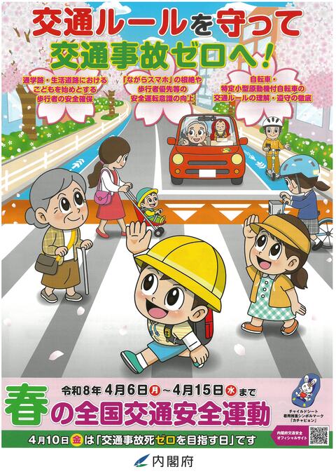 「おまじない 自分を守る みぎひだり」をスローガンに令和8年4月6日(月曜日)から令和8年4月15日(水曜日)までの10日間、令和8年「春の全国交通安全運動」を実施します。