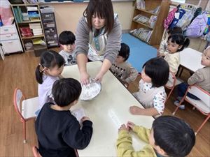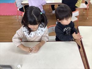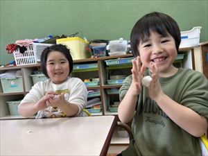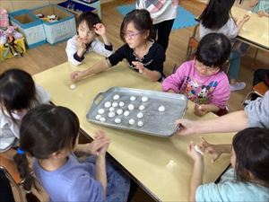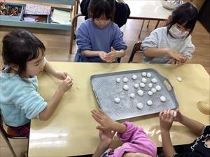 年少以上児の子どもたちは、だんごを丸めるところもやりましたよ。