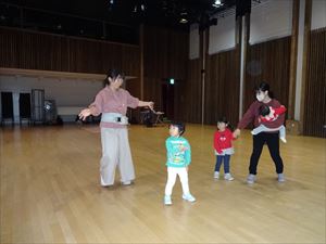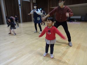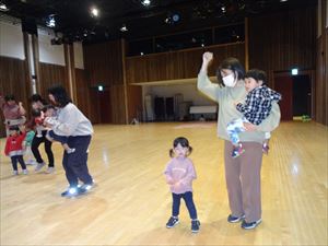 保護者の方は、スクワットの振り付けや、手足を上下に上げ下ろしする振り付けに、「いつも使わない筋肉が…」と最初は辛そうでしたが、くり返すうちに、慣れてきたのか笑顔もみられる会となりました。