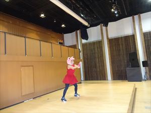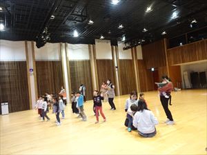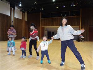 親子でズンバの講座はウォーミングアップからたくさん体を動かし、子どもたちは先生の真似をしながら、手をぐるぐる回してみたり、足踏みしてみたり楽しんでいました。