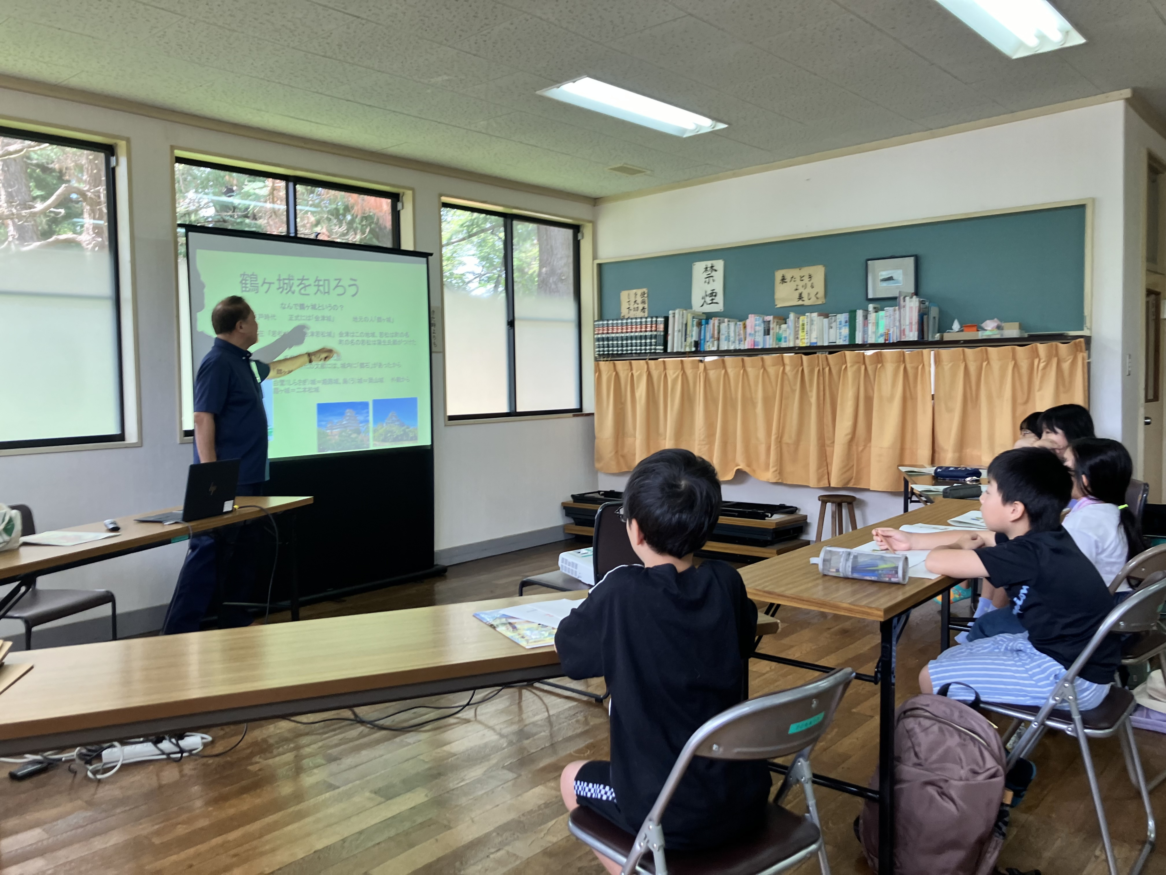【こどもガイド講座の様子】鶴ヶ城ボランティアガイドさんからガイドのノウハウを学びました