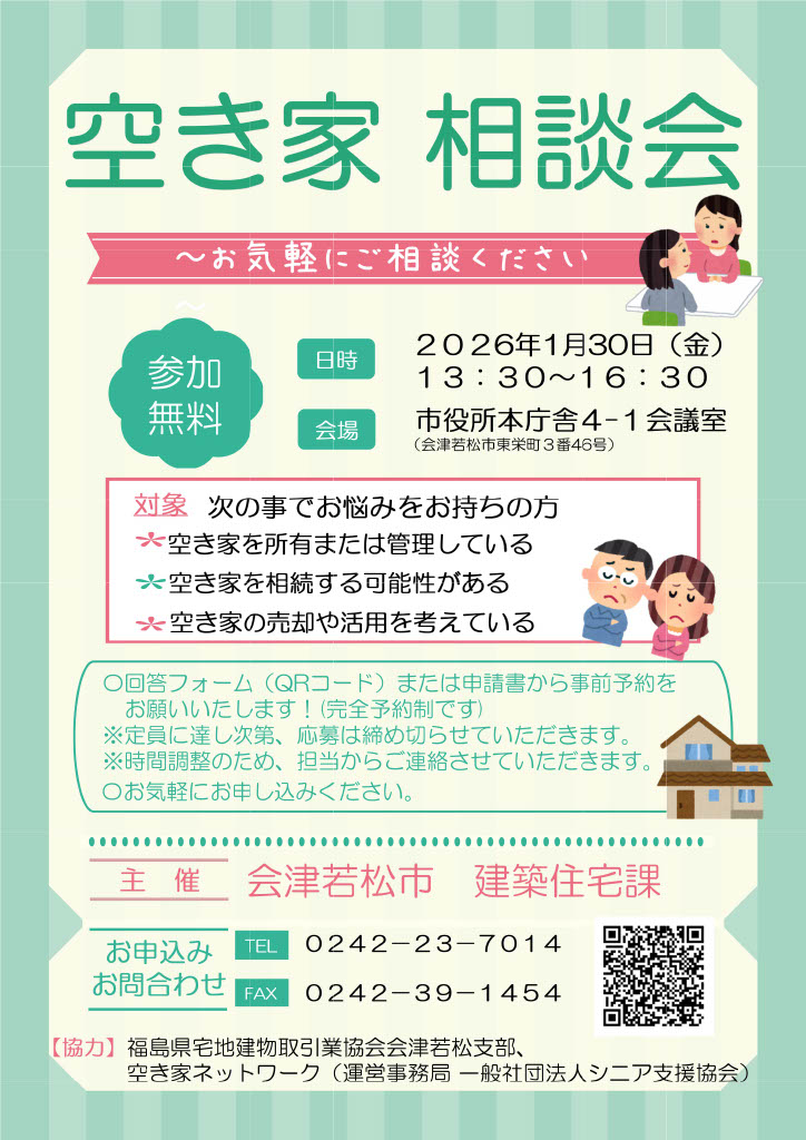 空き家に関するお悩みをお持ちの方を対象に相談会を行います。お気軽にご相談ください。