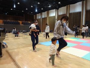内容:様々な音に合わせて親子で体を動かしましょう!歩いたり、走ったり、止まったり!?いろいろな動きを楽しみましょう♪