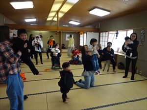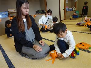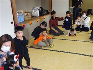 英語教室の先生をお呼びして、英語に親しみながらハロウィンパーティーを開催しました。ハロウィン衣装をきて参加してくれたお子さんも多く、とってもかわいらしい姿を見ることができましたよ。英語の歌をみんなで口ずさんだり、ハロウィンのふれあい遊びを楽しみました!!