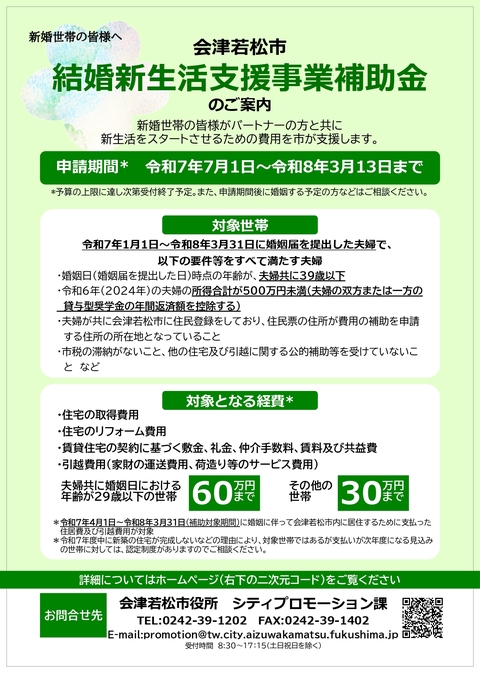 令和7年度 会津若松市結婚新生活支援事業チラシ[PDF:189KB]