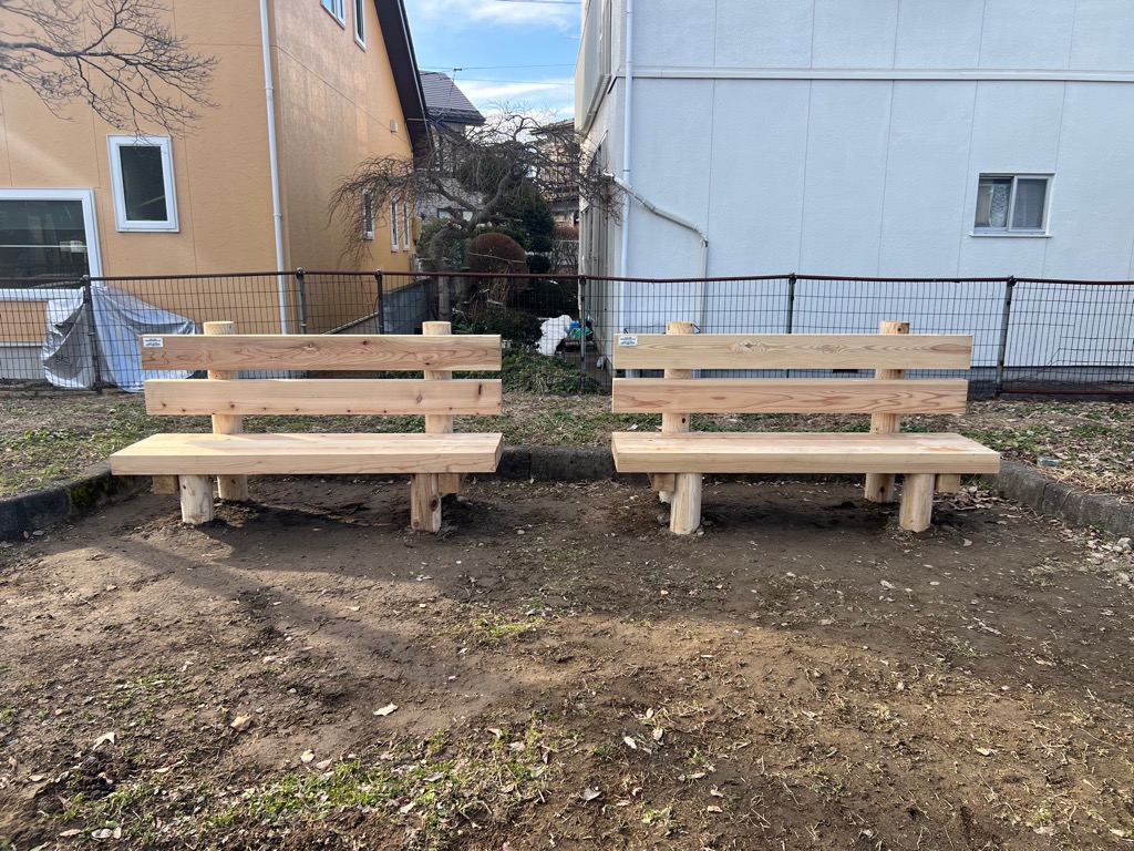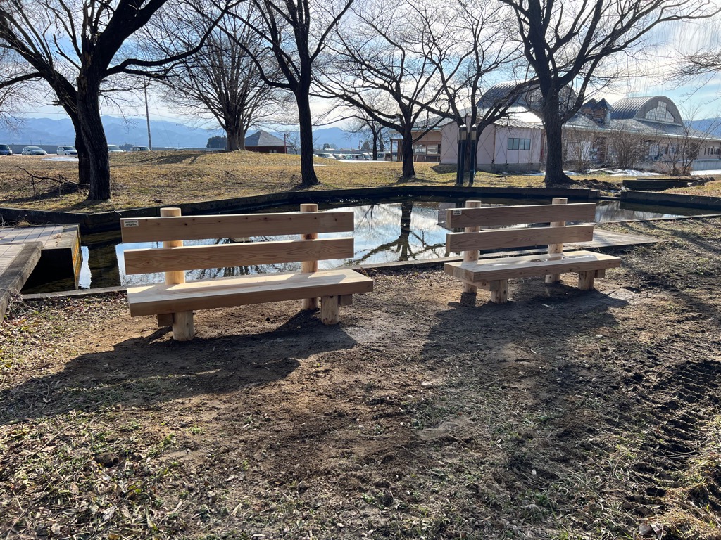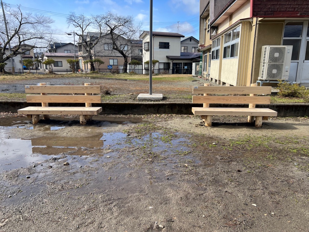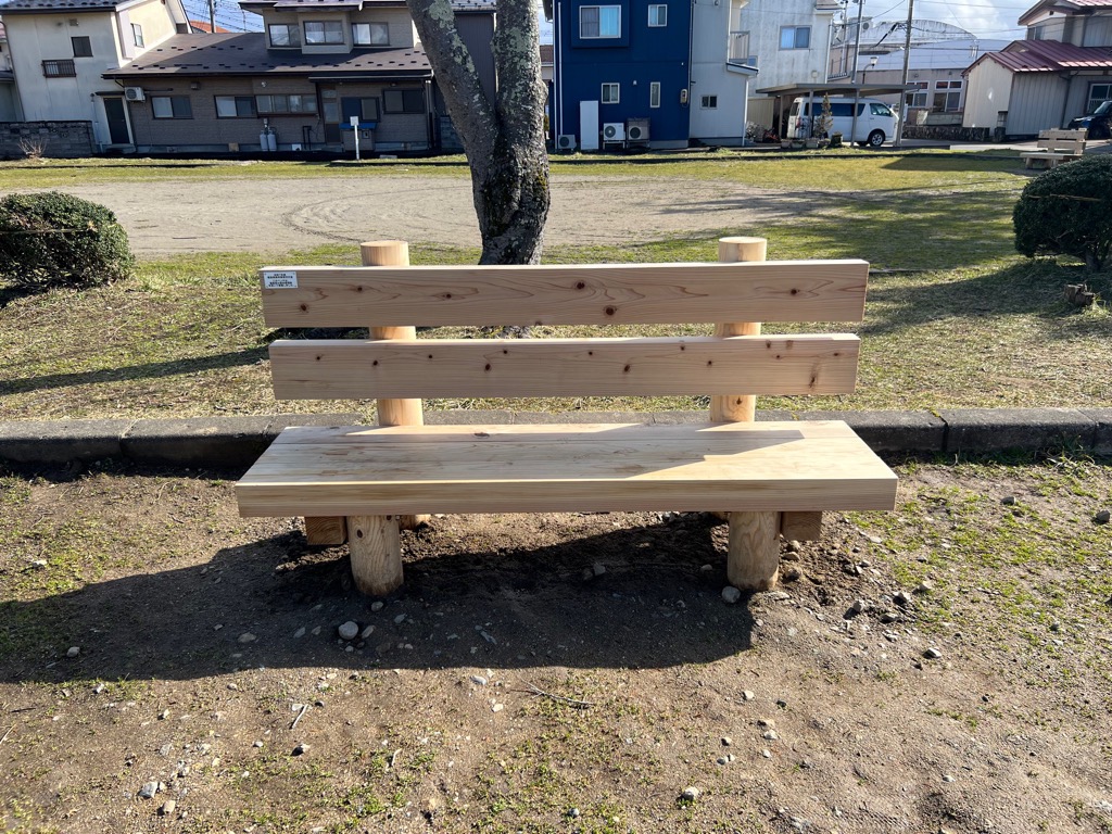 令和7年度森林環境交付金事業により、福島県の森林環境税を活用して、石堂町公園・ホタルの森公園・黒岩公園・七日町公園のベンチが一部新しくなります。