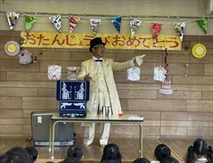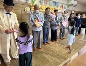 誕生会では手品を披露してくれた老人クラブさん!