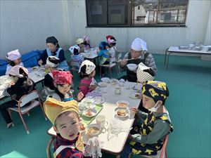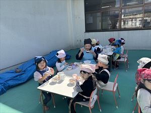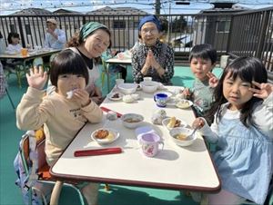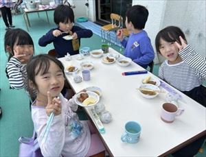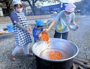 自分たちで作った料理はとてもおいしくおかわりする子も多く、秋晴れの空の下、老人クラブのみなさんと一緒に、たくさん食べていた子どもたちです!!