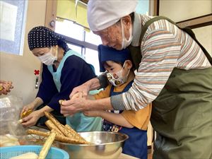 今年度は、会津若松市老人クラブの方々にお越しいただき、一緒に芋汁クッキングをしていただきました。