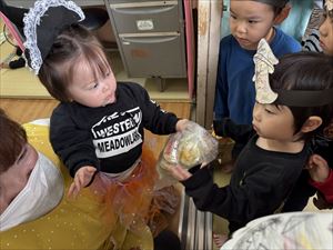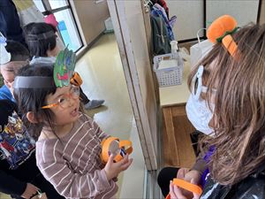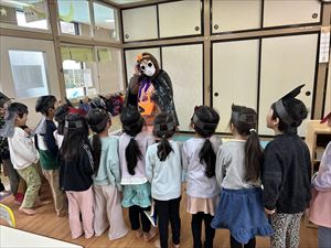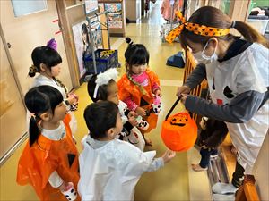 みんな上手にハロウィンの言葉を言いおかしをもらうことが出来ていました!楽しい行事になりました。