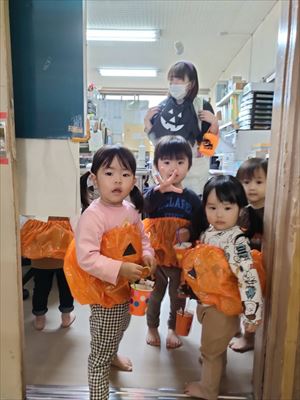 当日は、クラスごとにファッションショーをしたり、事務所の先生からお菓子をもらうため、所内を「トリックオアトリート!」と掛け声しながら歩きました!