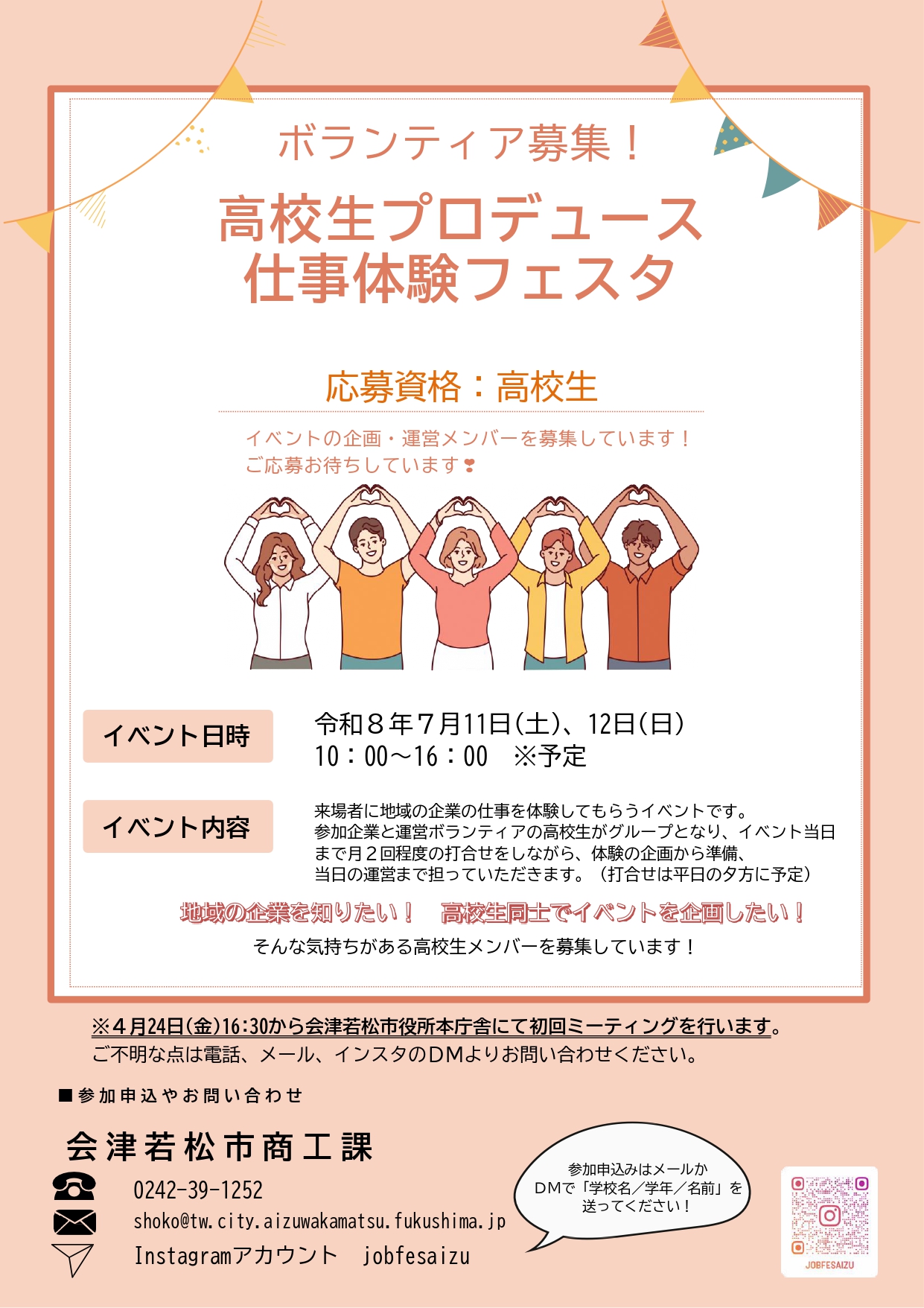 会津地域の高校生と企業が企画・運営する仕事体験フェスタを開催します。