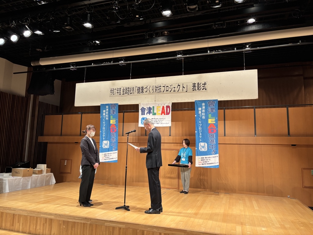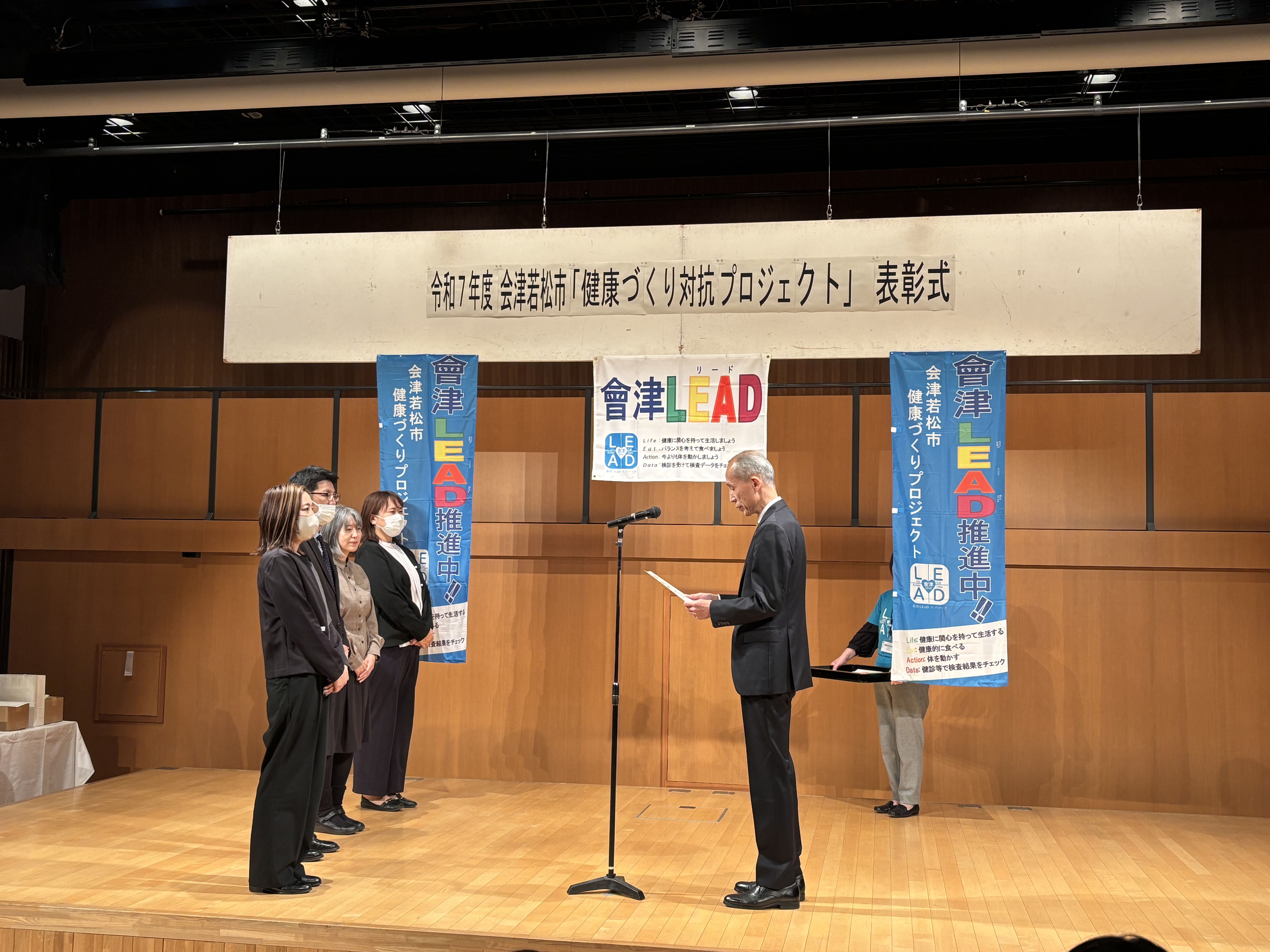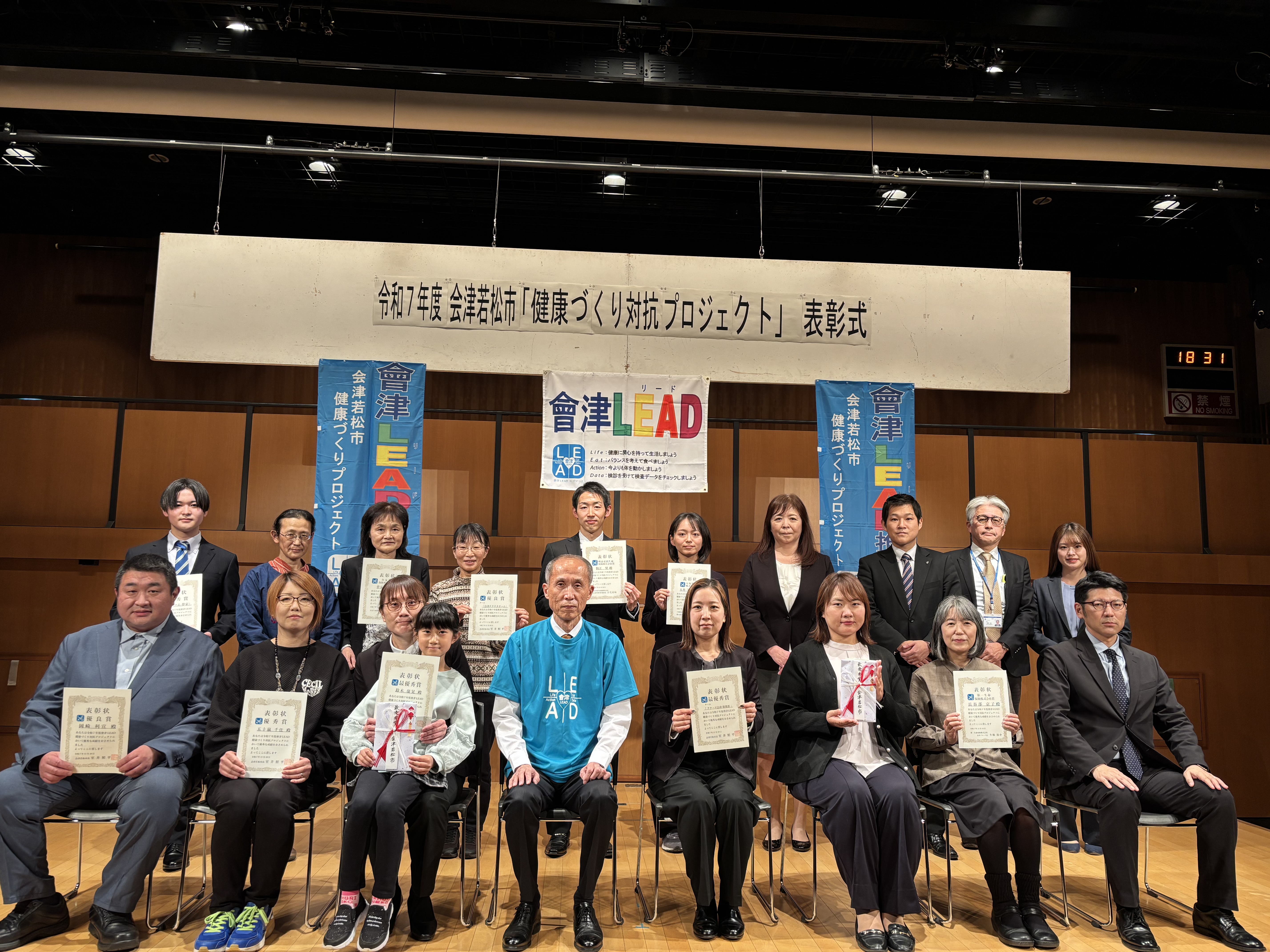 令和7年11月18日に會津稽古堂多目的ホールにて表彰式を開催しました。入賞された方々は、取組前後そして中間の測定会で計測した「体重・体脂肪率・内臓脂肪レベル」の減少、また「筋肉量」が増加されました。また、食事や運動などの生活改善にも取り組まれ、その記録を見える化されました。