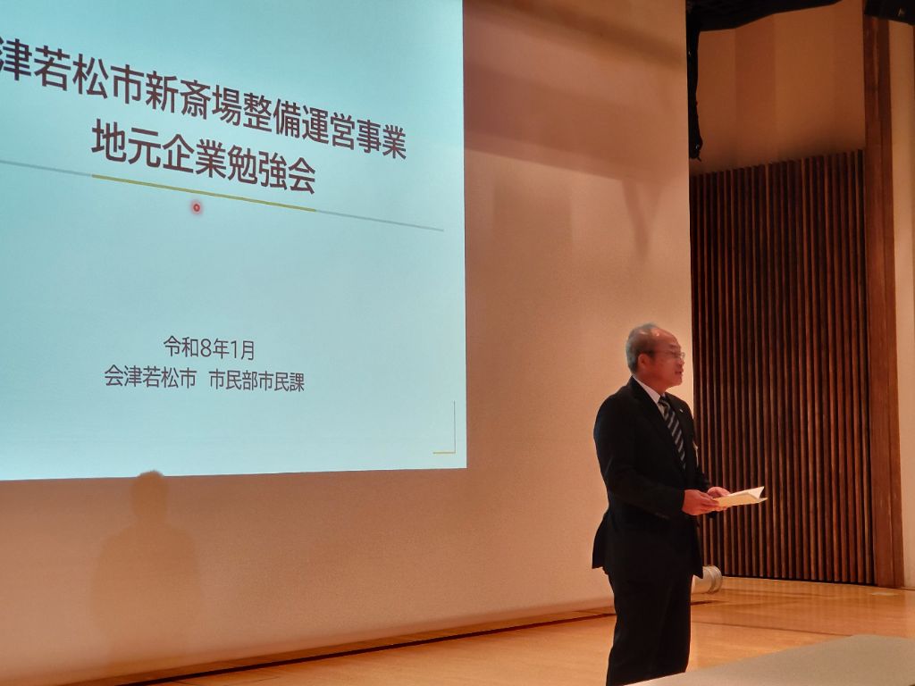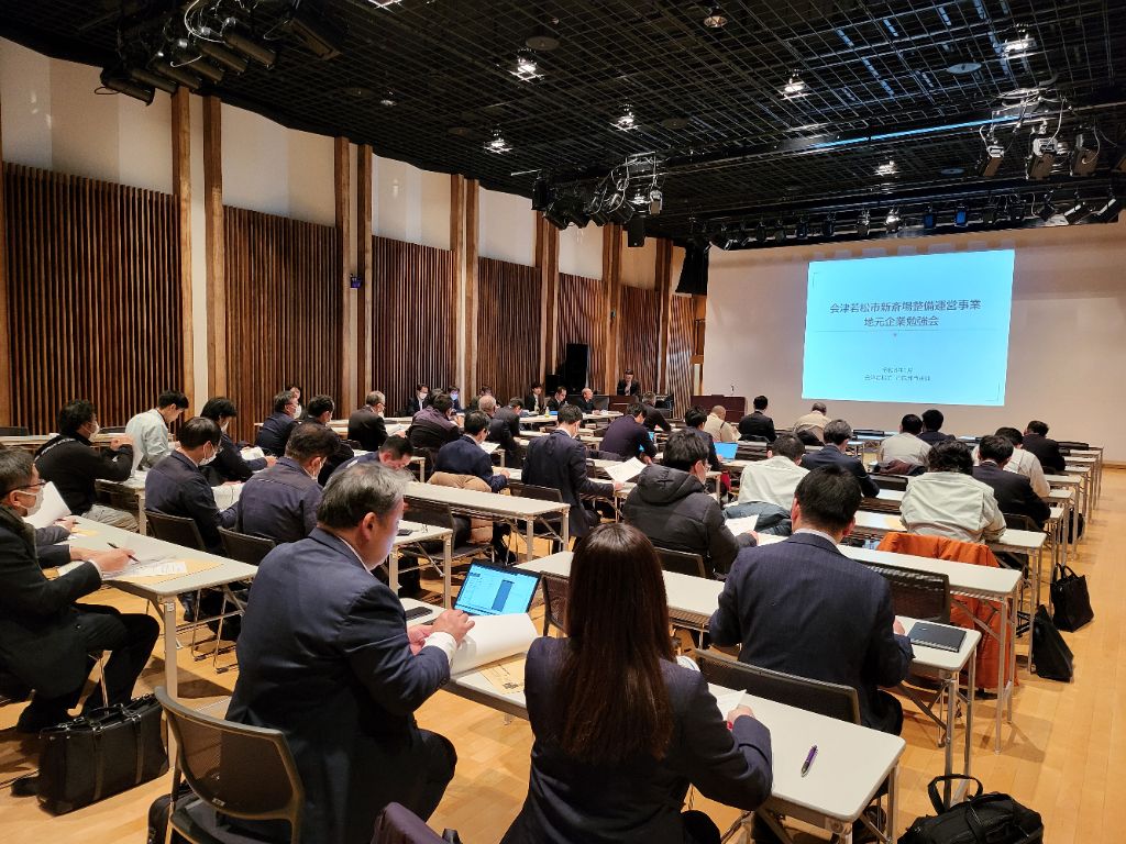 新斎場整備運営事業では、設計や建設、維持管理、運営等について、PPP/PFI等による民間活力の導入を検討していることから、本事業に関する情報発信やPPP/PFI等についての理解促進、事業者同士のマッチング等を目的として、令和8年1月23日に地元企業勉強会を開催しました。